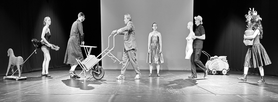 Akteure begegnen dem Raum, gleich einer Ausstellungs- oder Empfangssituation. Texte als Form der Konversation - vertont, gesungen, rezitiert.